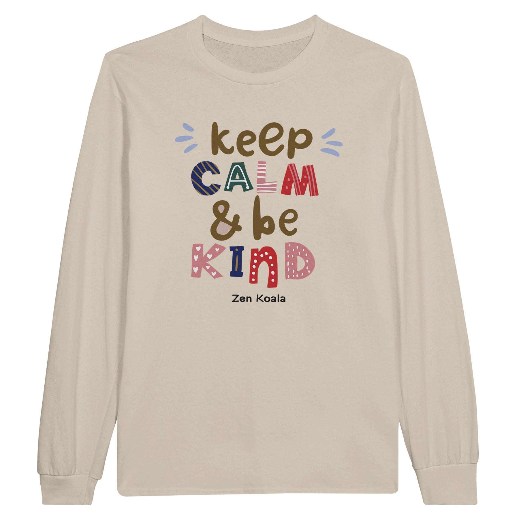 Stay serene and spread kindness with our "Keep Calm, Be Kind" long sleeve. It's a reminder for peace and compassion.